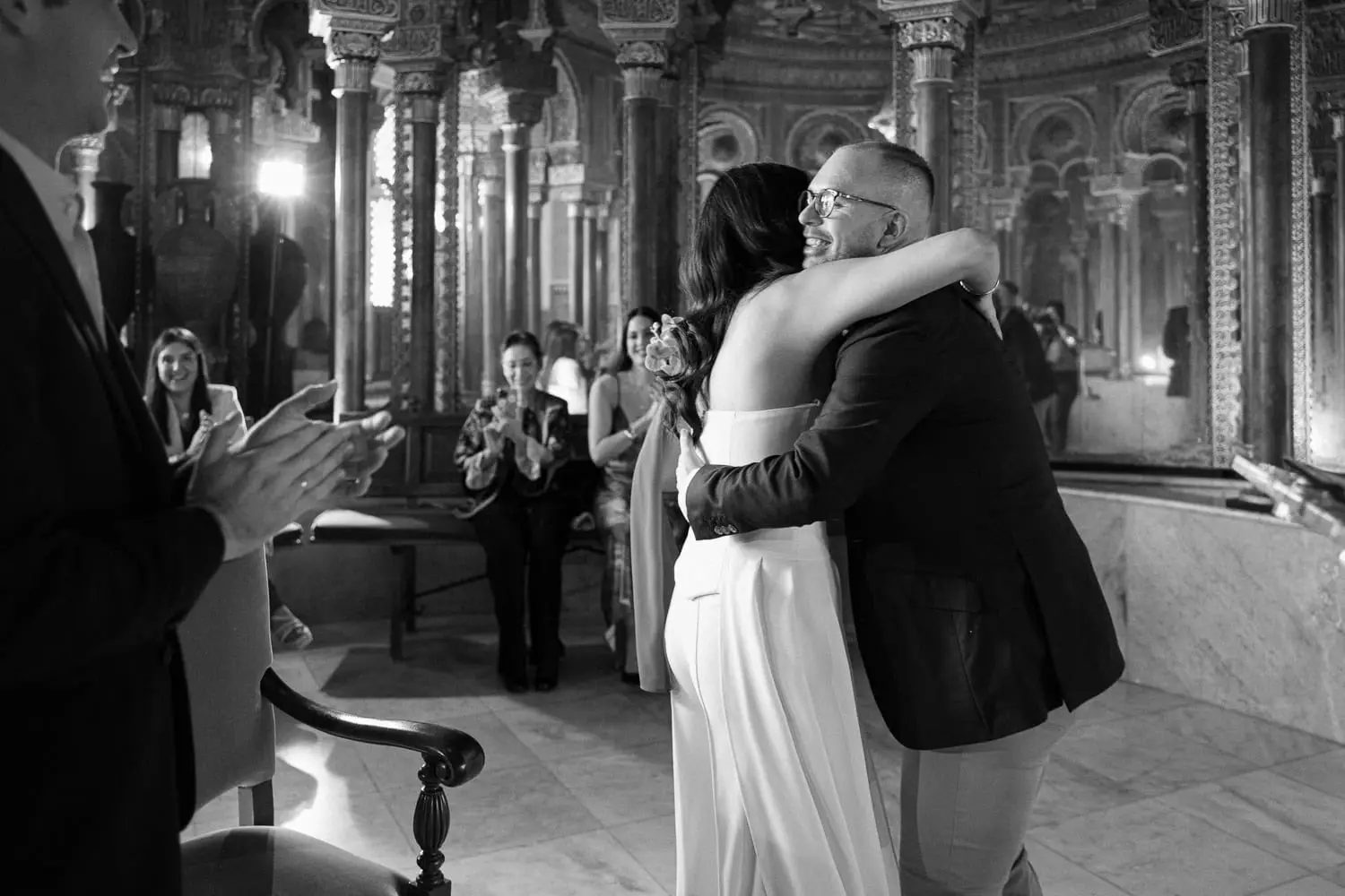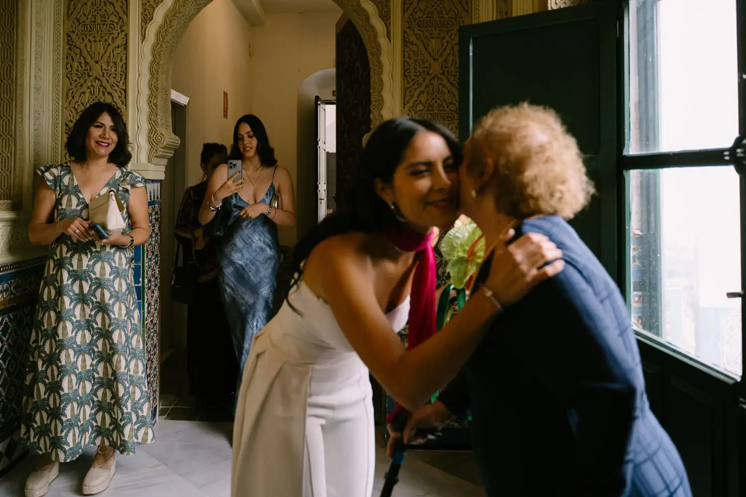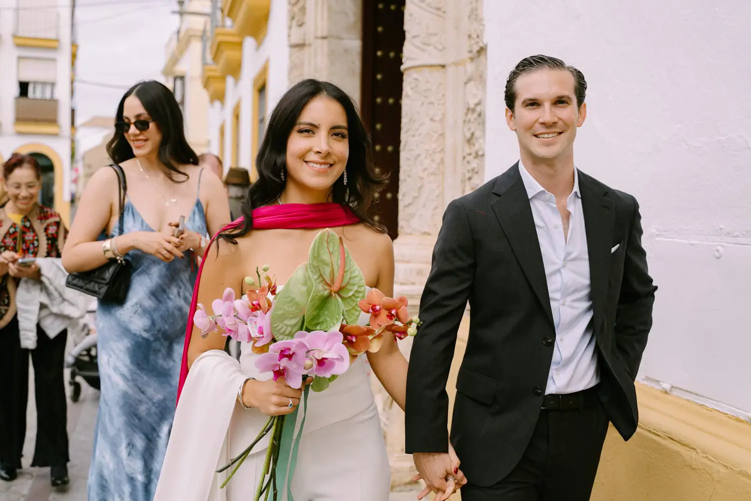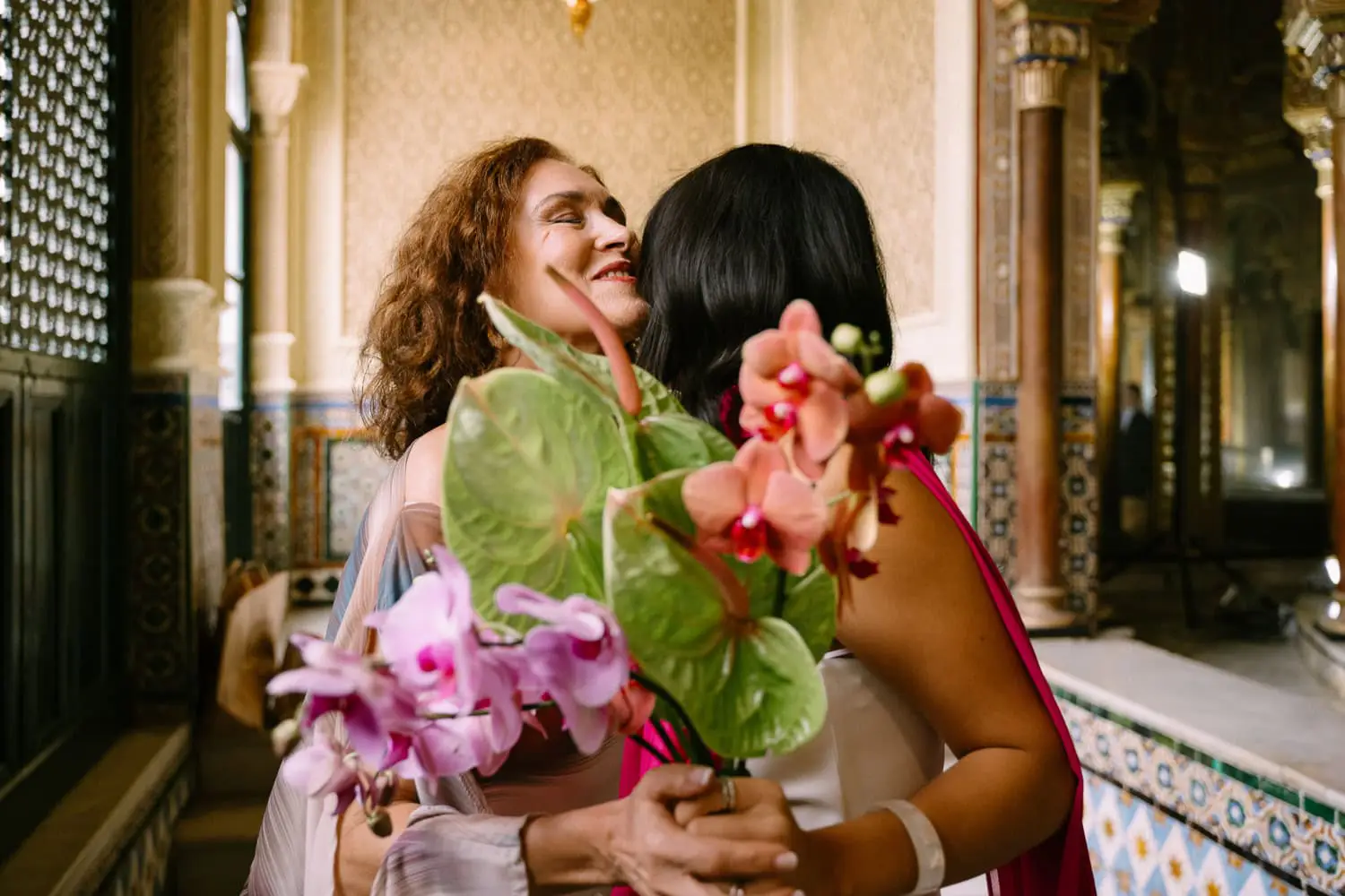 Dani, from Mexico, and Damian, from Seville, had a truly special civil wedding in Seville. Their ceremony took place at the city hall, officiated by a council member who was also a close friend of the couple. It was an emotional and intimate moment shared with their nearest and dearest.