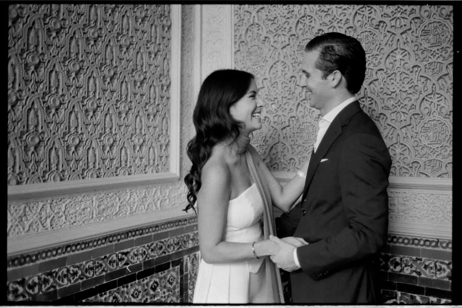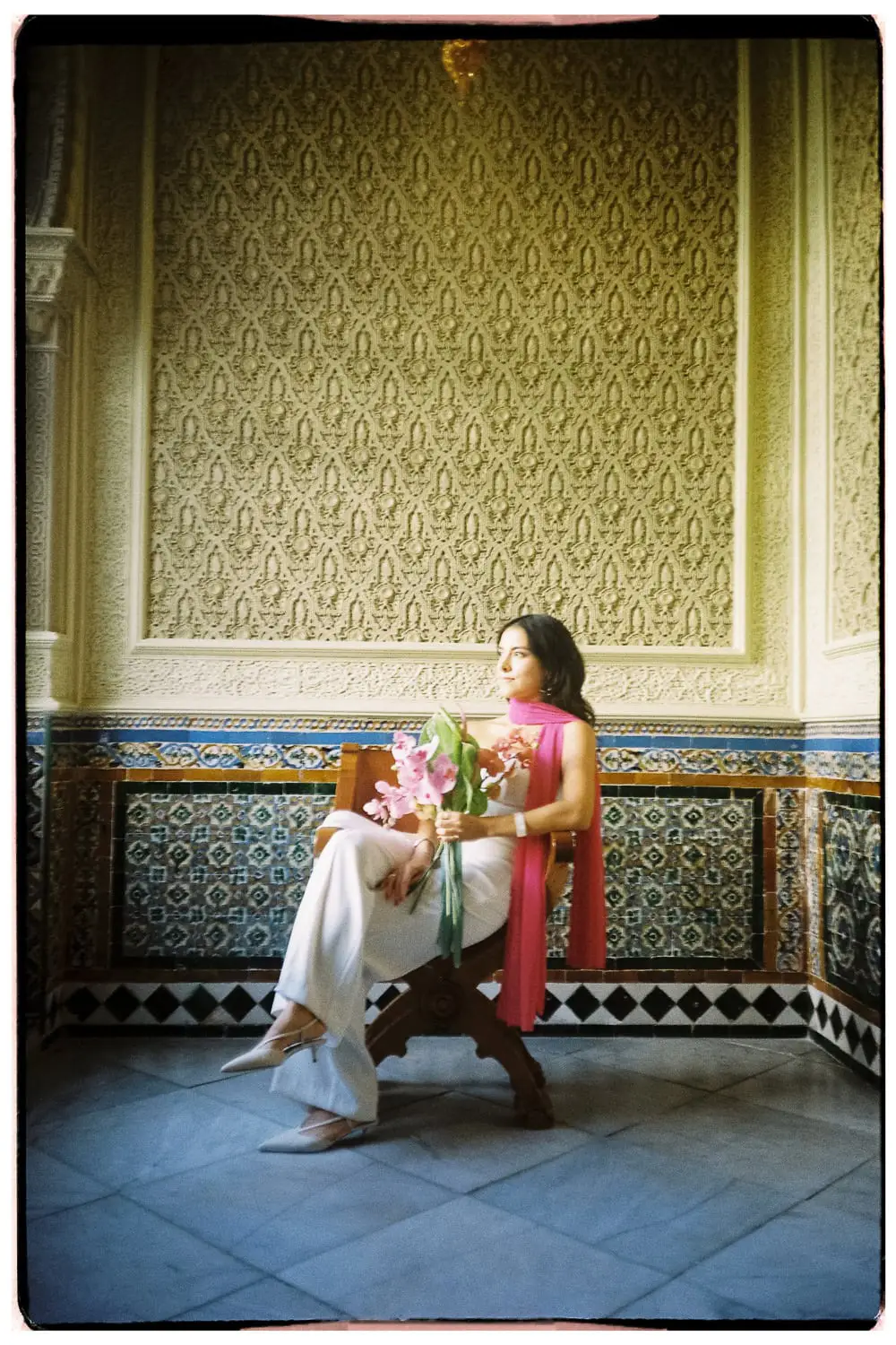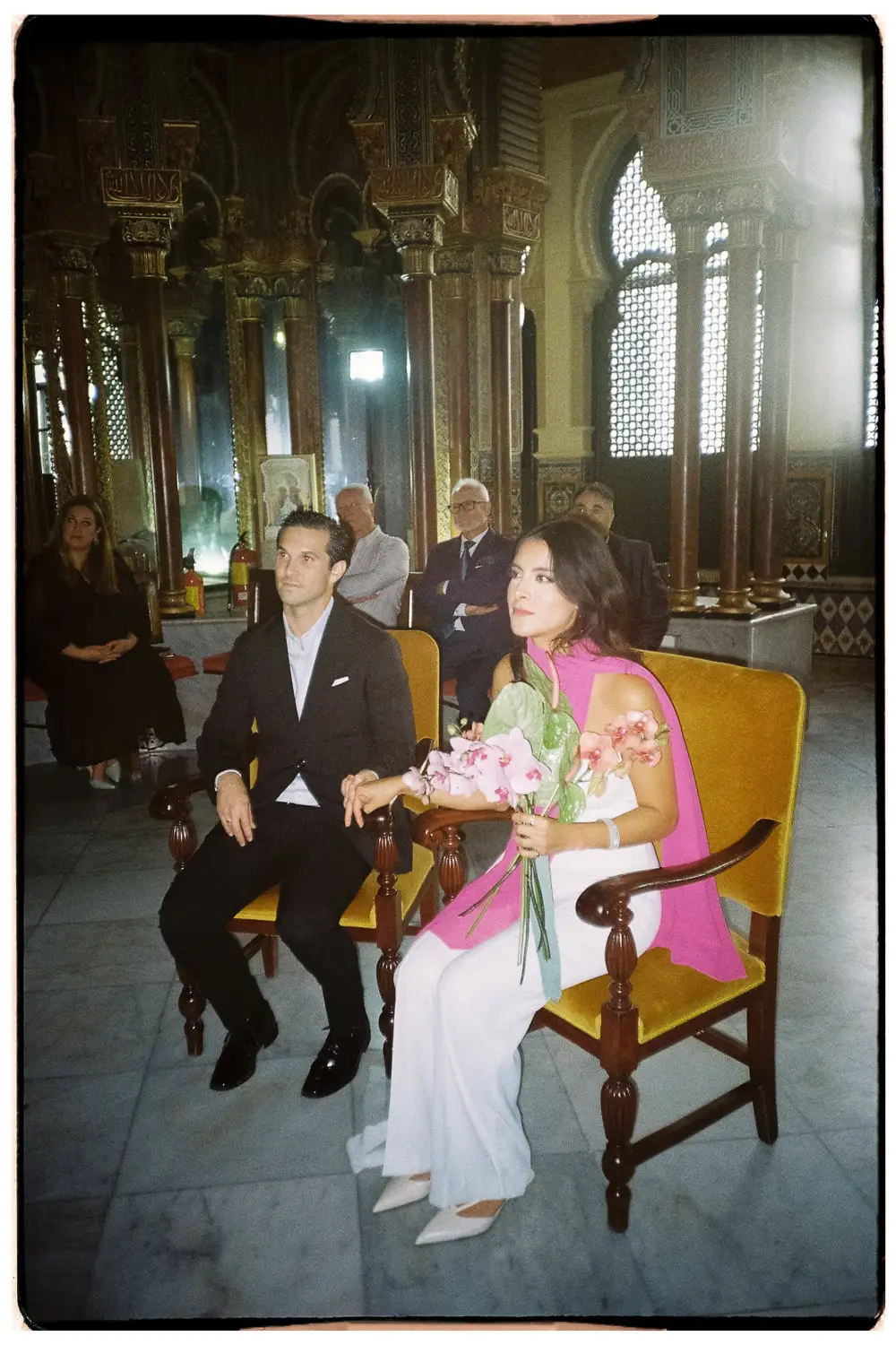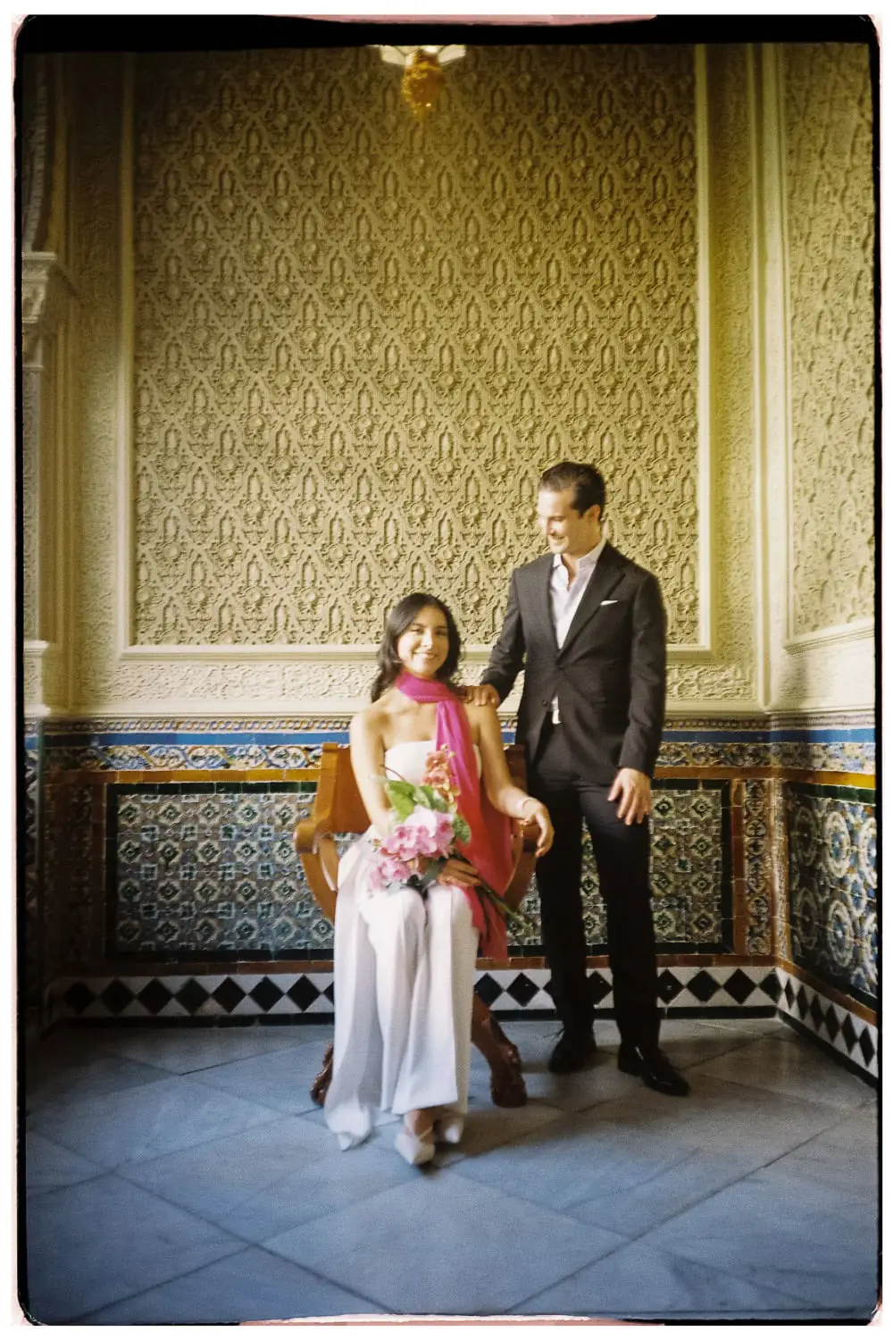 After the ceremony, we took a short but very productive couple’s photo session. We had a great time, and I think it shows in the pictures. As a wedding photographer in Seville, I always try to capture those genuine, heartfelt moments that make each couple’s story unique. For this session, I used film cameras, embracing my passion as an analog wedding photographer in Spain, which added a timeless, artistic touch to their wedding album.