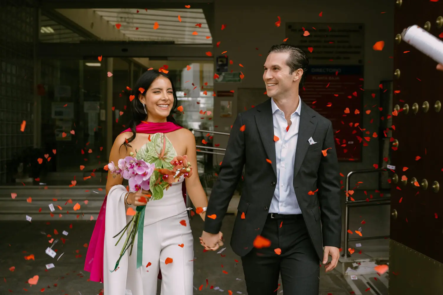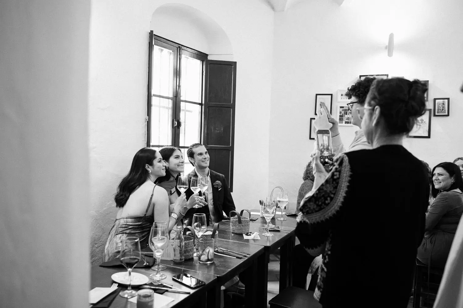 Following the photoshoot, their loved ones waited outside the city hall, ready with a joyful confetti shower. From there, they headed to a cozy restaurant where they celebrated their small wedding in Seville in an intimate and relaxed atmosphere.