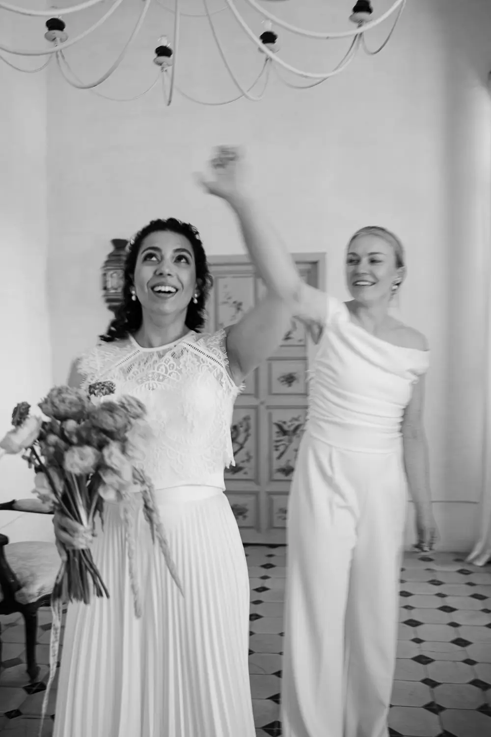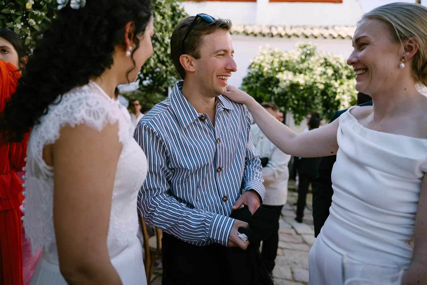 That’s the advantage of documentary wedding photography, especially for a same-sex wedding in Andalucia or any international wedding in Spain. The focus stays on what’s actually happening. The looks, the laughter, the movement, the conversations in different languages blending together.