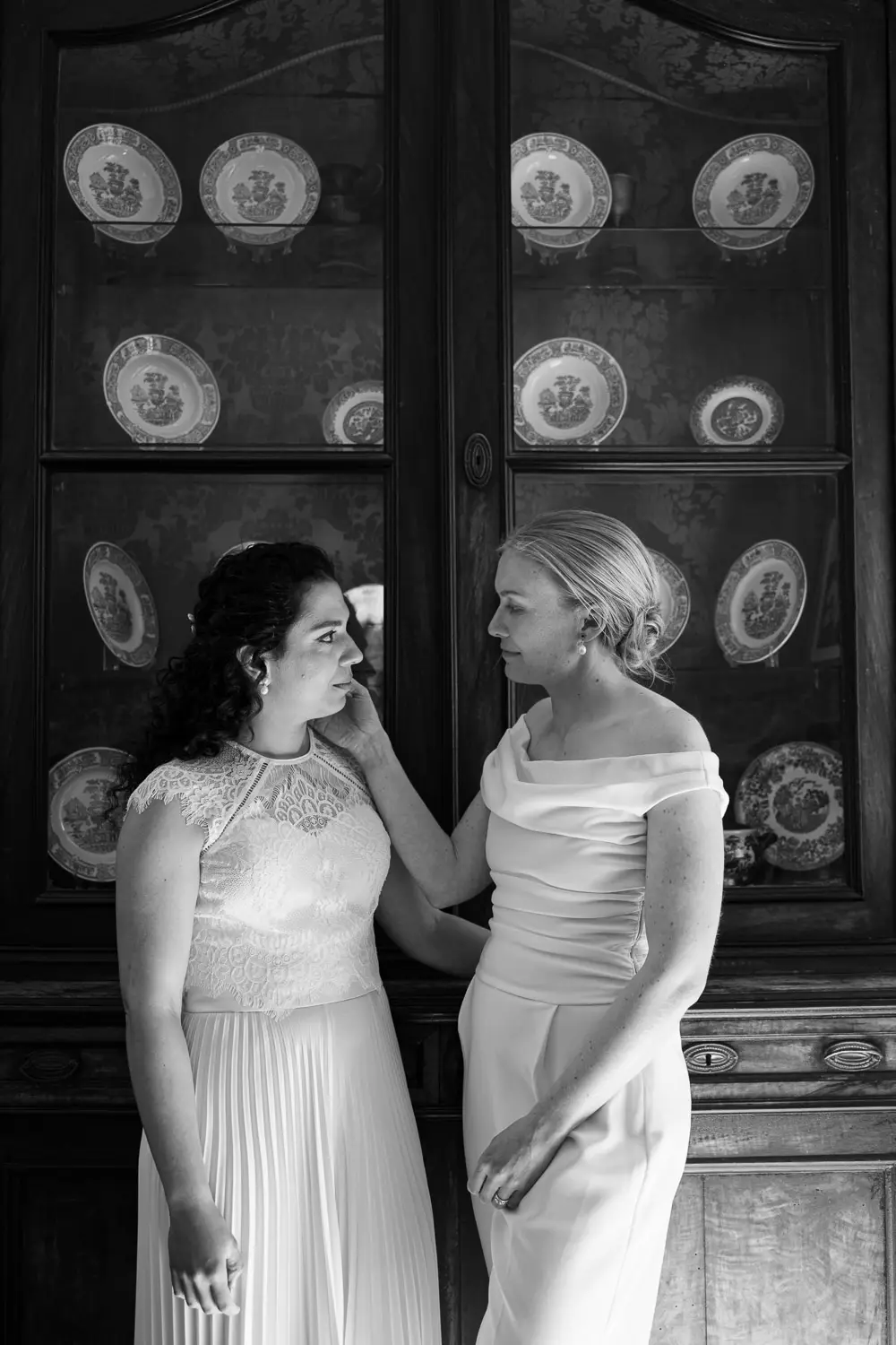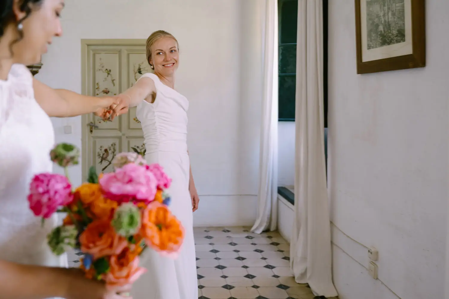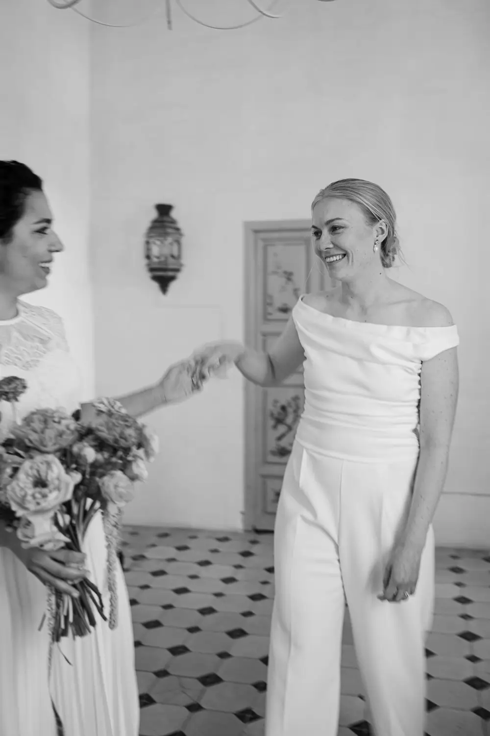 They prepared in separate rooms, although they kept going back and forth until it was finally time to get dressed. Being there for their first look just before the ceremony was one of those moments that doesn’t need staging. You could feel how much they care about each other.
